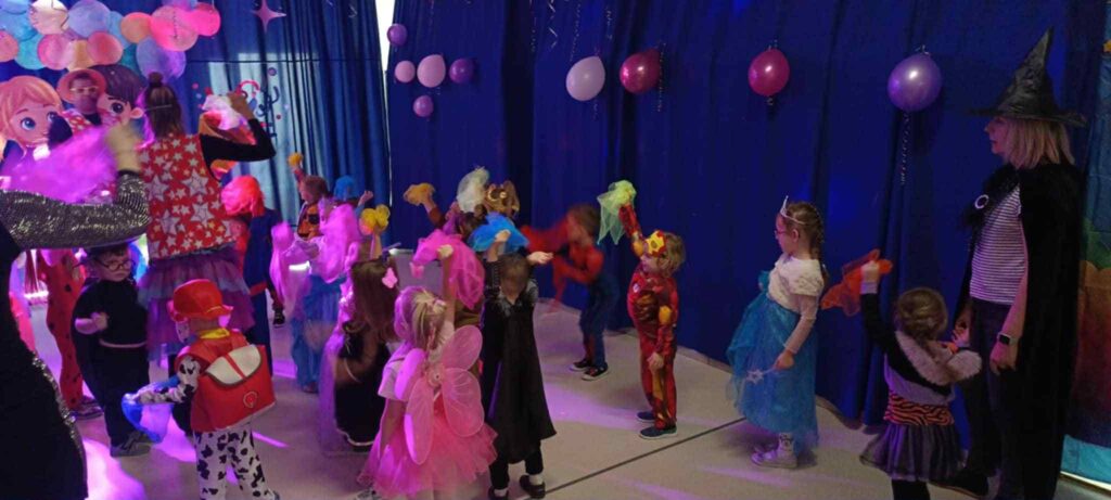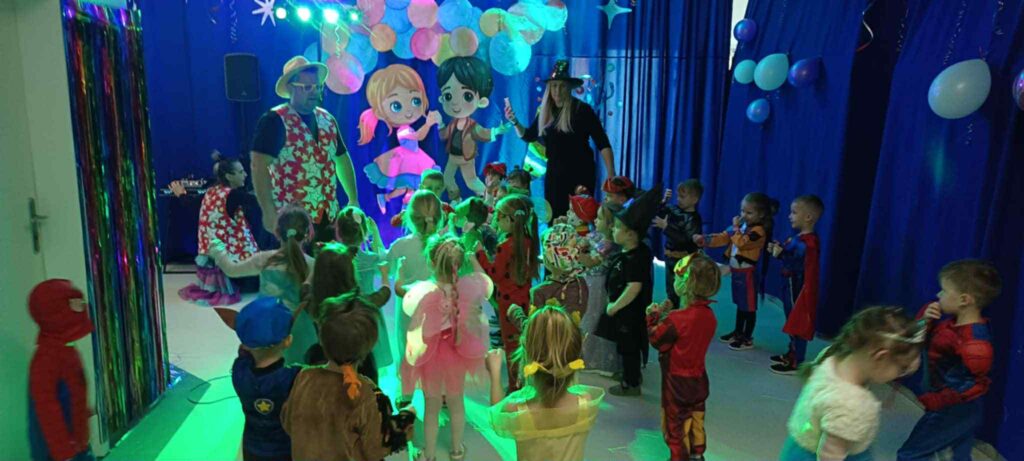 Bal karnawałowy to jedno z najbardziej wyczekiwanych wydarzeń w naszym przedszkolu — pełne radości, muzyki i kolorowych przebrań. W tym roku świętowaliśmy go wspólnie 10 oraz 12 lutego, zamieniając nasz korytarz oraz salę gimnastyczną w prawdziwą krainę zabawy i fantazji.