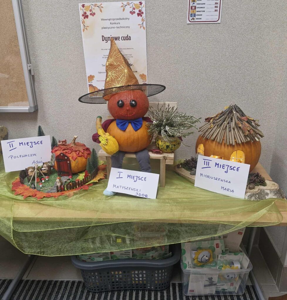 Cieszymy się, że konkurs wzbudził tak duże zainteresowanie i entuzjazm wśród dzieci. Powstałe prace zachwycały kreatywnością i starannością – nasze przedszkolaki stworzyły prawdziwe dyniowe arcydzieła! 🧡