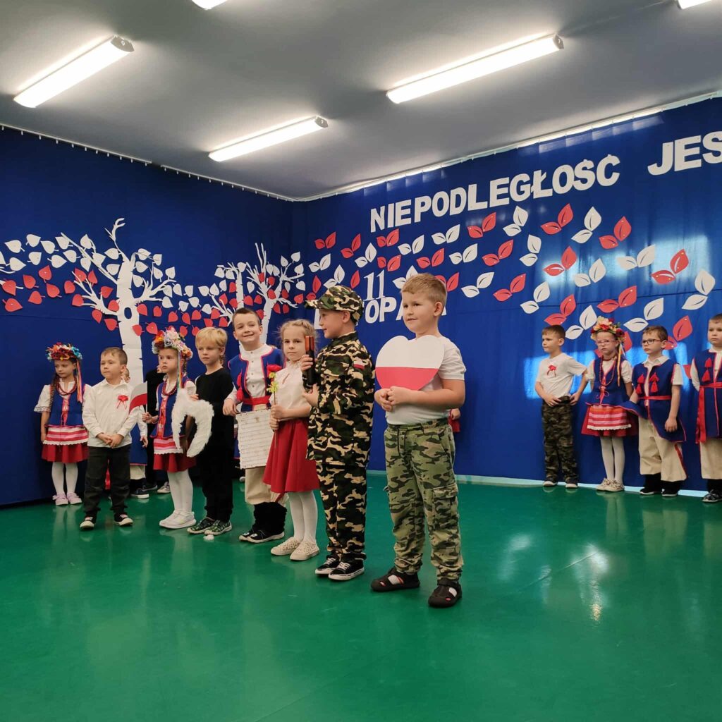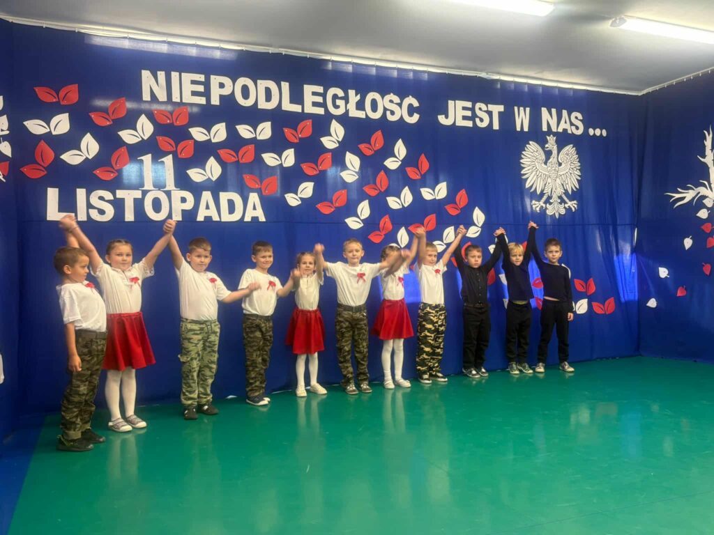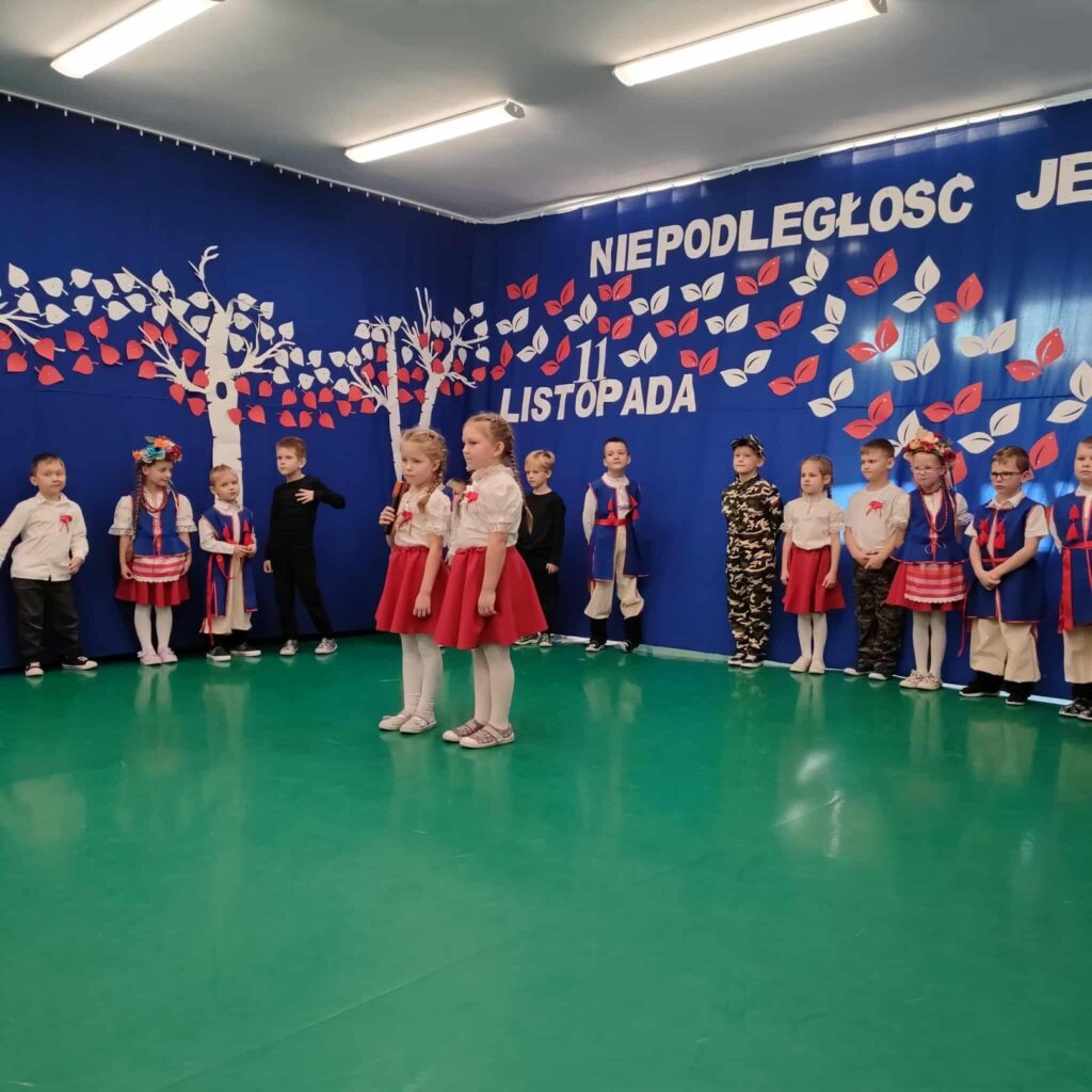 Z okazji Święta Niepodległości dzieci z grupy Smerfy zaprezentowały piękny program artystyczny. Przedszkolaki z zaangażowaniem zatańczyły poloneza, przedstawiły krótką scenkę o historii odzyskania przez Polskę wolności oraz zaśpiewały piosenki i wyrecytowały wiersze patriotyczne.